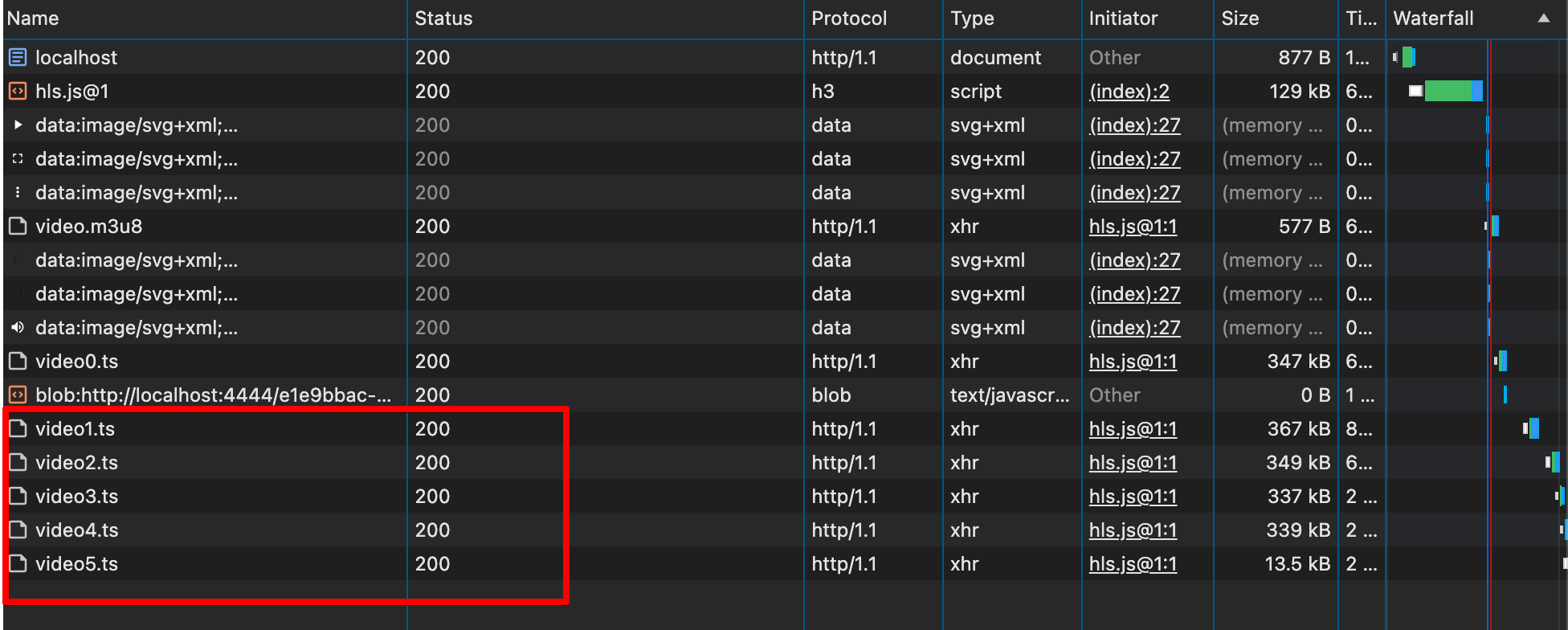 Then we edit all requests that contain .ts to have them include the signature as well. Let’s see the result
