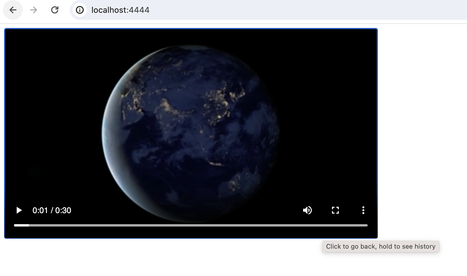 Once we run the server with node index.js we can access the HTML page and see that our video is visible